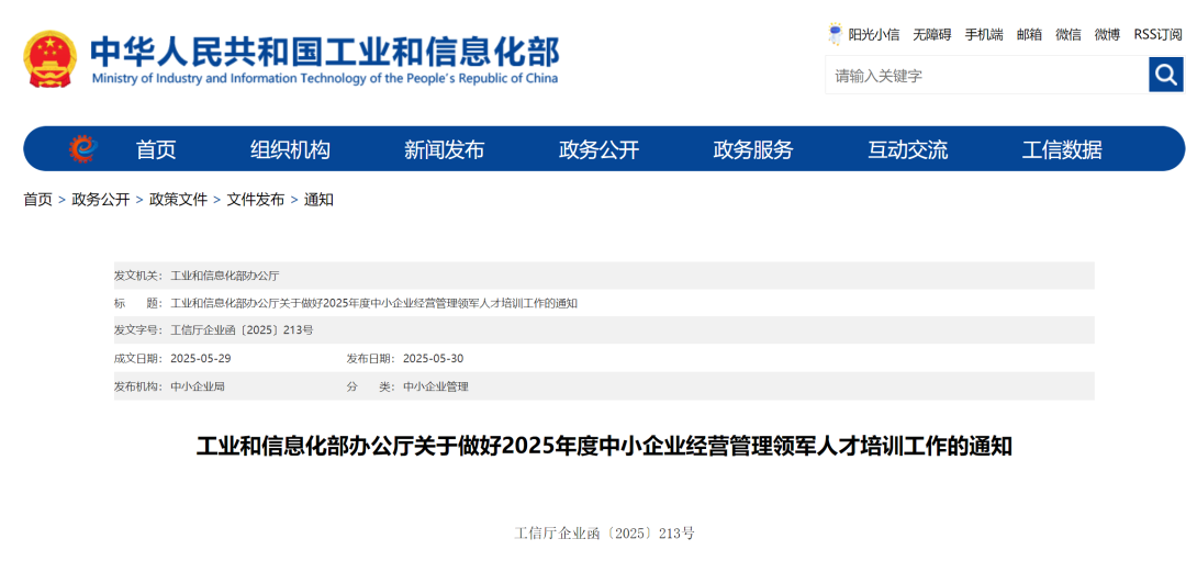 为提升中小企业负责人经营管理水平,促进企业创新发展,工信部将在全国范围内遴选一批优秀企业管理者组织开展高层次领军人才培训。有关事项通知如下。